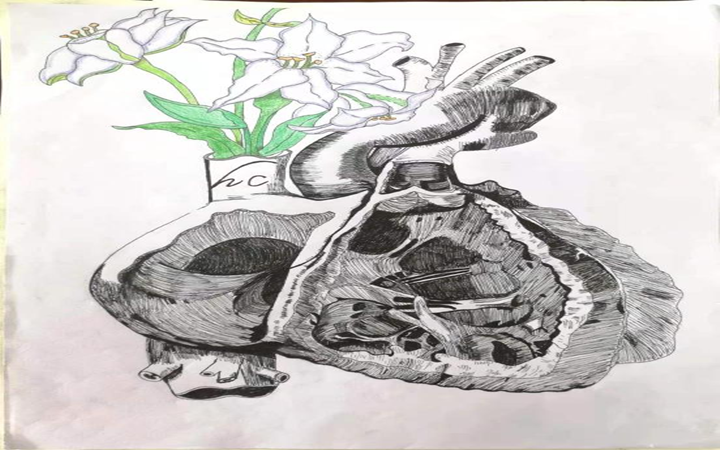 此次比赛共收到作品 546份,作品形式多样,多以素描、彩铅画、油画等形式为主,较为精细科学地展现人体结构。学生将专业与艺术相融合,传统与创意碰撞,学科与比赛交织,借创意将医学的感性美展现得淋漓尽致。作品内容活泼生动,结构逼真,发人深省。有的将人体结构与自然生物相结合,展现学生积极向上的学习态度与医者仁心的精神;或用画笔勾勒出人体肌肉轮廓,显示喷薄生命的力量美;或将人体与社会人文相结合,传达出画者对生命的沉思。