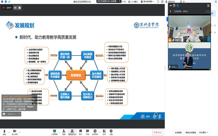 5月6日下午,医学影像技术专业虚拟教研室开展线上教研活动。活动邀请滨州医学院教务处处长、医学影像学院院长李祥林教授做医学影像技术专业建设讲座,医学系主任孔晓妮主持,医学影像技术教研室全体教师参会。