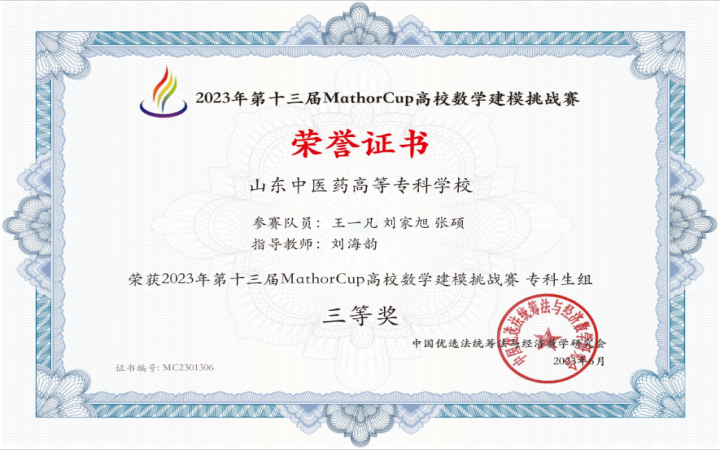 近日,第十三届MathorCup全国高校数学建模挑战赛获奖结果公布,我校医学系刘海韵老师指导的公共卫生管理专业学生从9007支队伍中脱颖而出,荣获全国三等奖。
