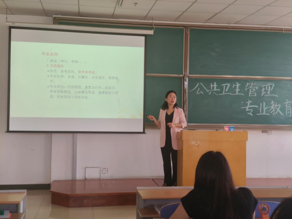 此次讲座邀请了山东省传染病预防控制技术能手、烟台市疾病预防控制中心科长冯雪英,冯科长分享了自己在疾病预防控制岗位的经历,为广大学生上了一堂生动的专业技能课,引导学生们脚踏实地、志存高远,努力成为公共卫生技术技能人才。她还围绕公共卫生管理专业的职业发展、就业岗位、岗位特点、未来职业规划、岗位实习等学生密切关注的话题,激励学生们树立目标,立志技能成才,讲座内容精彩纷呈,给公共卫生管理专业学生起到了引领示范作用。