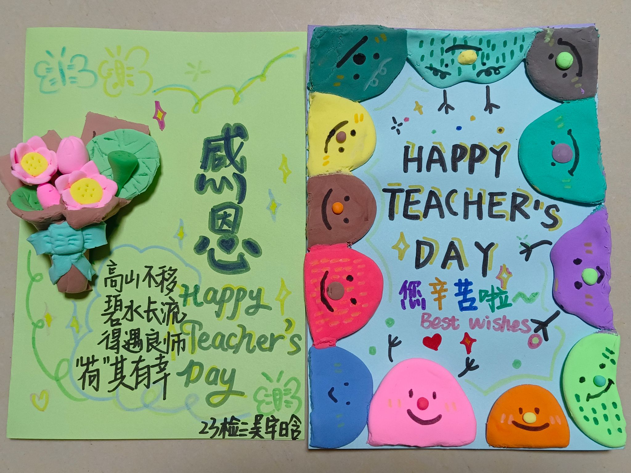 活动期间同学们积极参与,他们充分发挥自己的创造力,通过制作精美贺卡和写三行情书的方式,为老师们送上最真挚温暖的祝福。“恩重如山,吾爱吾之师,敦敦教诲吾之难忘。”一张张精美的贺卡一封封深情的情书,传递着学生们对老师满满的的感恩与敬意。这些贺卡和情书不仅是简单的礼物,更是同学们与老师之间深厚情谊的纽带。最终23级口腔二班刘琪同学以其独具匠心的作品设计获得本次活动一等奖。