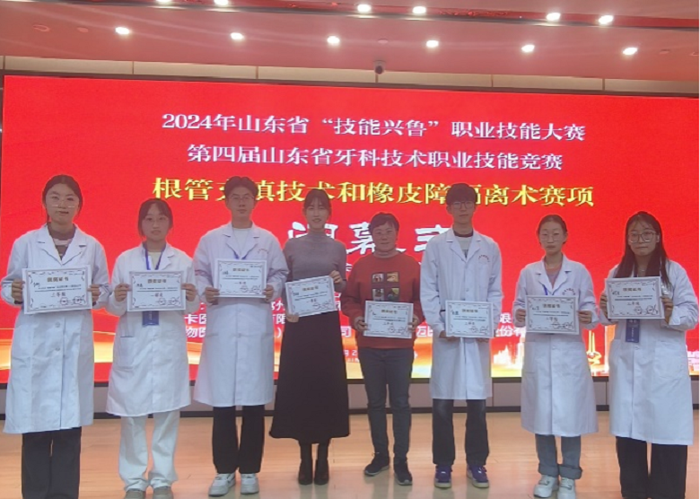 近日,山东省“技能兴鲁”职业技能大赛——第四届山东省牙科技术职业技能竞赛在枣庄职业学院和济南市口腔医院成功举办。本次大赛分为口腔护理技术、橡皮障隔离技术和根管充填技术两个赛项。我校口腔医学专业师生共斩获一等奖4项、二等奖1项、三等奖6项。