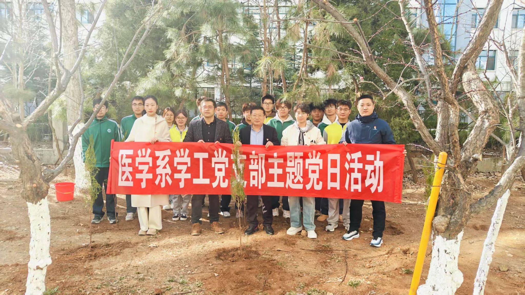 春风拂绿,万象更新。为深入践行生态文明理念,厚植绿色发展底色,3月13日,医学系学工党支部开展了一场义务植树主题党日活动,党支部全体党员及学生志愿者共同参与。