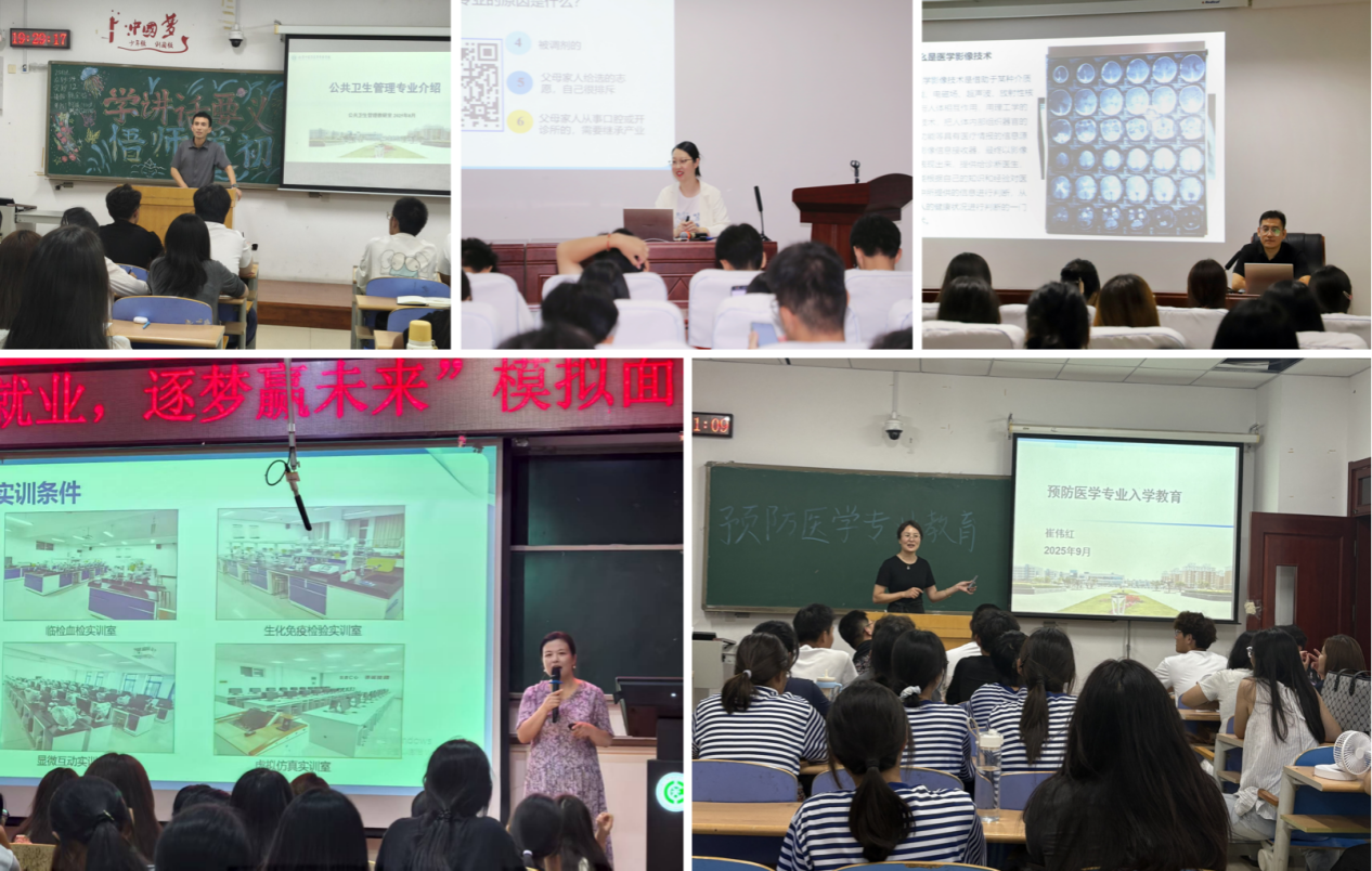 9月8日至13日,医学系顺利开展了2025级新生入学专业教育系列活动。医学检验技术、口腔医学、医学影像技术、公共卫生与预防医学五个专业分别组织了专题讲座,旨在帮助新生深化专业认知、树立学业规划意识。各专业负责人、辅导员以及432名新生共同参加了本次活动。