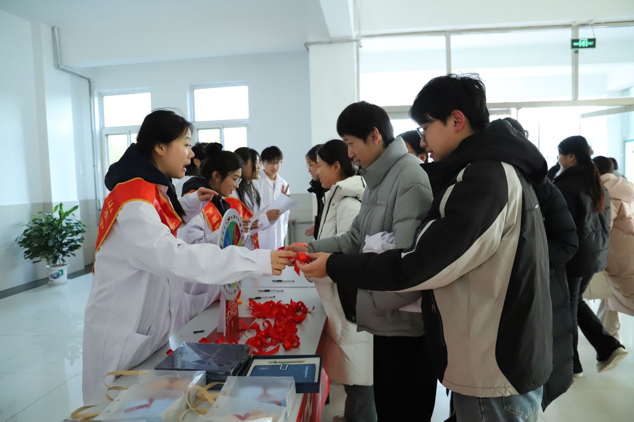 本次活动宣传形式多样,现场设置三大特色模块:知识闯关区,学生通过转动“防艾大转盘”随机抽取问题,在趣味问答中掌握“安全套正确使用”“暴露后黄金阻断72小时”等核心知识;承诺打卡区,以巨幅红丝带墙为载体,参与者写下“主动检测,拒绝歧视”等宣言并拍照打卡,传递防艾责任感;红丝带接力赛,同学们两两结对互系红丝带,以肢体互动强化“支持与陪伴”的温暖寓意。
