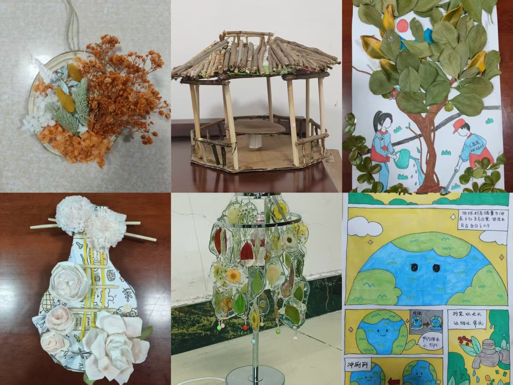 在参赛过程中,参赛选手们紧扣“赋予旧物新生命,传递环保新理念”主题,将废弃材料转化为艺术佳作,充分展现了环保理念与艺术创作的完美融合。本次活动共征集36件环保创意作品,参赛作品内容丰富,有的以枝叶编织出翠绿流苏挂饰,有的以落叶为颜料,在画布上拼贴出生态图景,还有心灵手巧者用废弃快递盒制作琵琶模型。通过参与此次比赛,同学们深刻认识到环保与生活的息息相关,纷纷表示要从身边的小事做起,积极践行绿色生活理念,为构建生态文明校园贡献自己的一份力量。