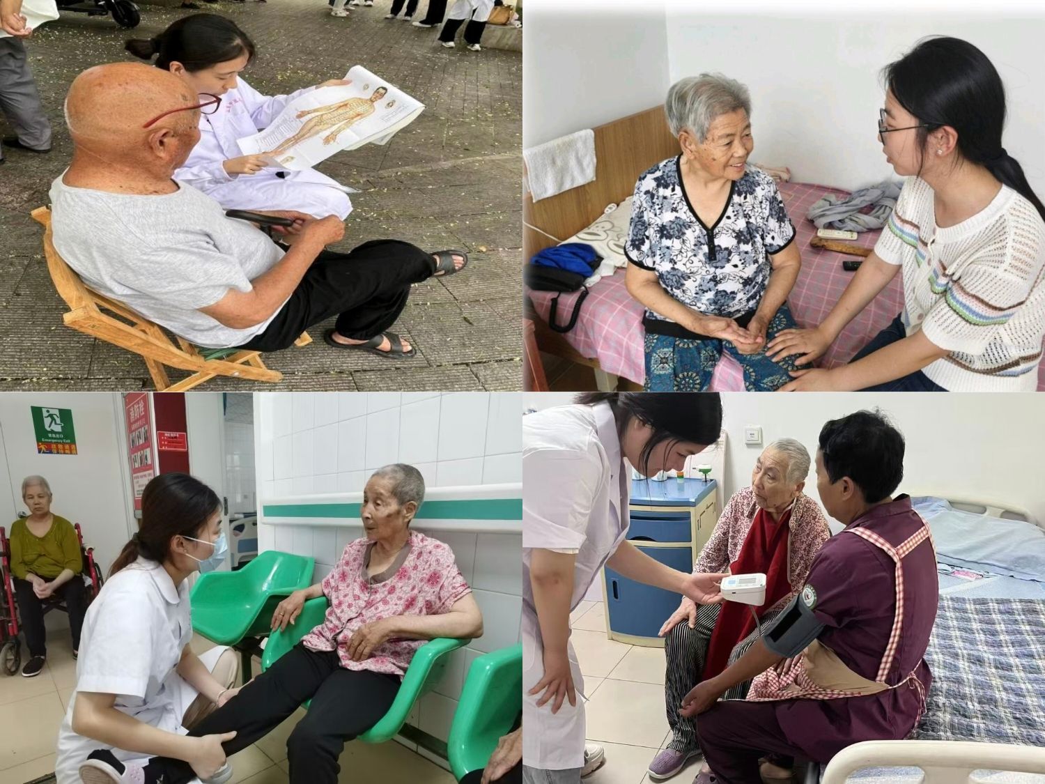 活动中,志愿者们根据社区需求和专业特长进行分组,优化服务效果,涵盖健康检测、知识宣讲和便民服务三大板块。在健康检测服务社区,志愿者们熟练地为老人测量血压、血糖,针对此类问题异常的老人,结合饮食、运动给出个性化调理建议;知识宣讲社区内,志愿者用“方言+案例”的通俗方式,讲解秋冬季节呼吸道疾病预防等日常护理知识;在便民服务社区,志愿者为行动不便的老人提供上门体检与生活照料服务,用贴心举动温暖老人心。