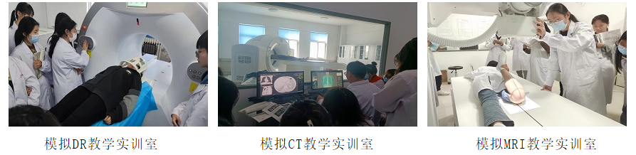 医学影像技术专业校内实训中心总建筑面积约600平方米。①模拟DR教学实训室配备模拟DR实训系统、虚拟仿真DR教学系统、更衣隔断室、个人放射防护用品等,用于DR成像原理、DR设备结构、人体各部位DR检查、DR图像质量控制等实训教学。②模拟CT教学实训室配备模拟CT实训系统、虚拟仿真CT教学系统、更衣隔断室、个人放射防护用品等,用于CT设备结构、人体各部位CT检查、CT 图像质量控制等实训教学。③模拟MRI教学实训室配备模拟MRI实训系统、虚拟仿真MRI教学系统、更衣隔断室、铁磁性物体探测设备,用于MRI设备结构、人体各部位MRI检查、MRI图像质量控制等实训教学。④超声检查技术实训室配备超声诊断仪、超声检查体模等,用于超声设备结构、人体各部位超声检查、超声图像质量控制等实训教学。⑤影像诊断实训室配备电脑、影像资源库、教学PACS、观片灯等,用于影像解剖结构辨认、影像诊断报告书写等实训教学。