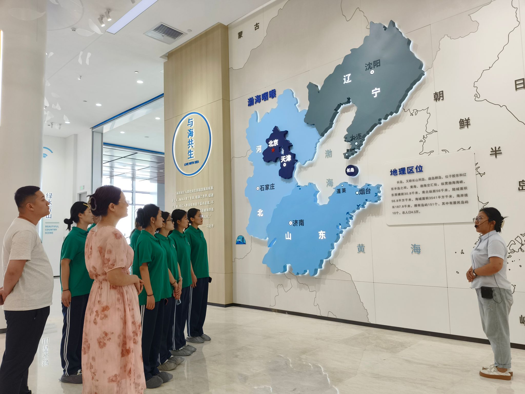 7月17日,团队赴长岛海洋生态文明展览馆开展专题学习教育,了解海岛生态保护与渔业发展、民生健康之间的共生关系,深入探究海洋生态建设与乡村振兴战略的有机衔接。该展览馆以“生态基底——红色基因”为叙事主线,通过科技赋能的沉浸式展陈,生动诠释了长岛在海洋生态文明建设中的创新实践。