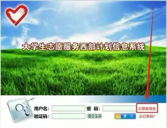 (1)进入西部计划官网(http://xibu.youth.cn/)点击右侧“西部计划报名系统”进入大学生志愿服务西部计划信息系统