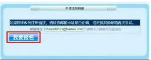 (4)填写完个人邮箱后,点击"我要报名"页面会弹出对话框提示